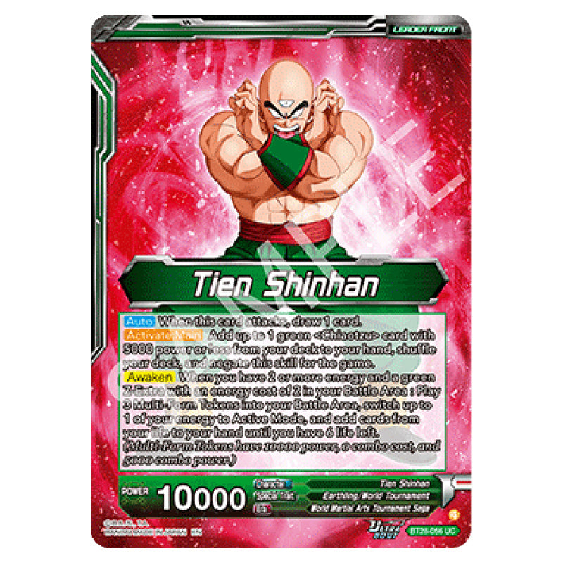 Tien Shinhan // Tien Shinhan, Return of the Mysterious Technique is a Uncommon, LEADER card from the Dragon Ball Super set Prismatic Clash (B28-056)