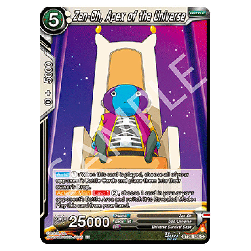 Zen-Oh, Apex of the Universe is a Common, BATTLE card from the Dragon Ball Super set Prismatic Clash (B28-125)