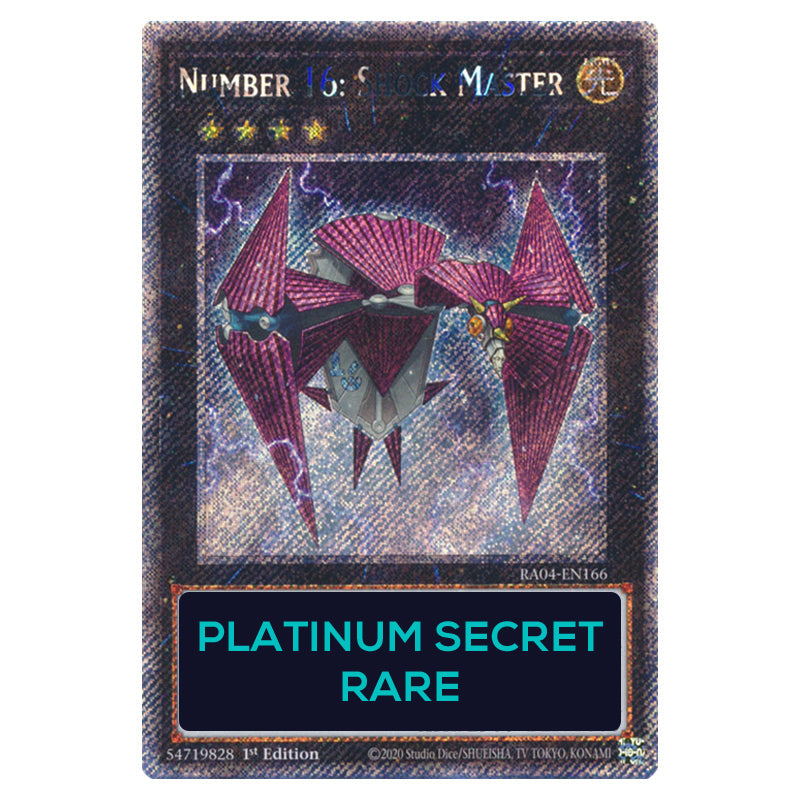 Number 16: Shock Master is a Platinum Secret Rare, Effect Xyz Monster from the Yugioh set Quarter Century Stampede (RA04-EN166-PSR)
