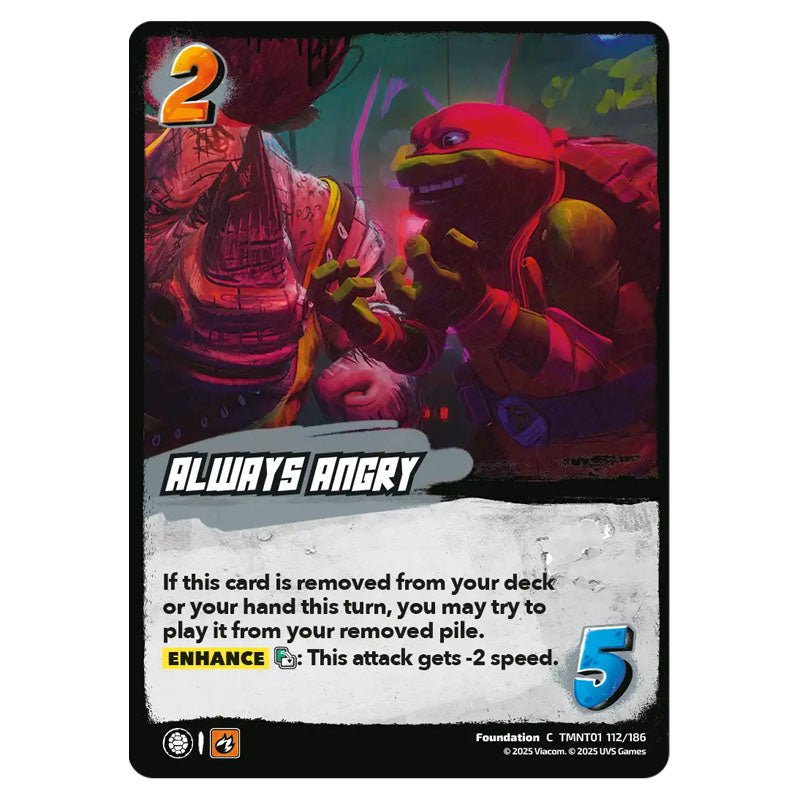 Always Angry is a Common Foundation card from the Universus set Teenage Mutant Ninja Turtles