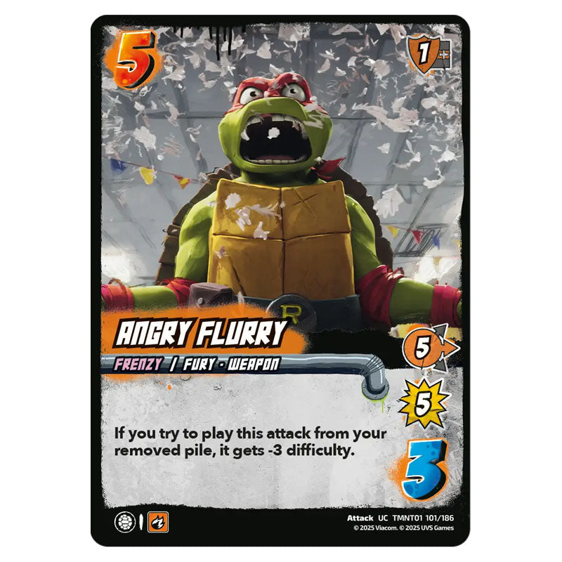 Angry Flurry is a Uncommon Attack card from the Universus set Teenage Mutant Ninja Turtles