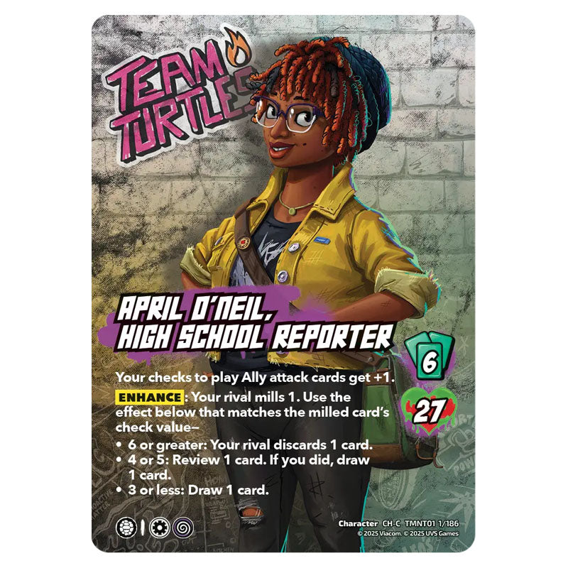 April O'Neil, High School Reporter is a Common Character card from the Universus set Teenage Mutant Ninja Turtles