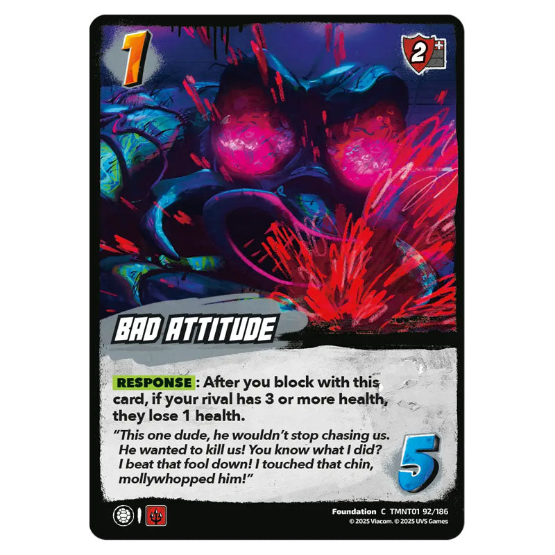 Bad Attitude is a Common Foundation card from the Universus set Teenage Mutant Ninja Turtles