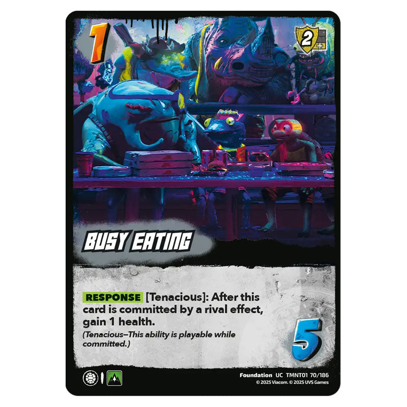 Busy Eating is a Uncommon Foundation card from the Universus set Teenage Mutant Ninja Turtles