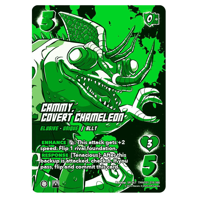 Cammy, Covert Chameleon is a AltArt card from the Universus set Teenage Mutant Ninja Turtles