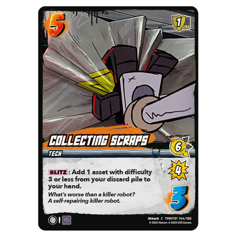 Collecting Scraps is a Common Attack card from the Universus set Teenage Mutant Ninja Turtles
