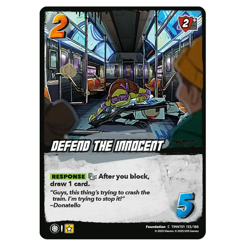Defend the Innocent is a Common Foundation card from the Universus set Teenage Mutant Ninja Turtles
