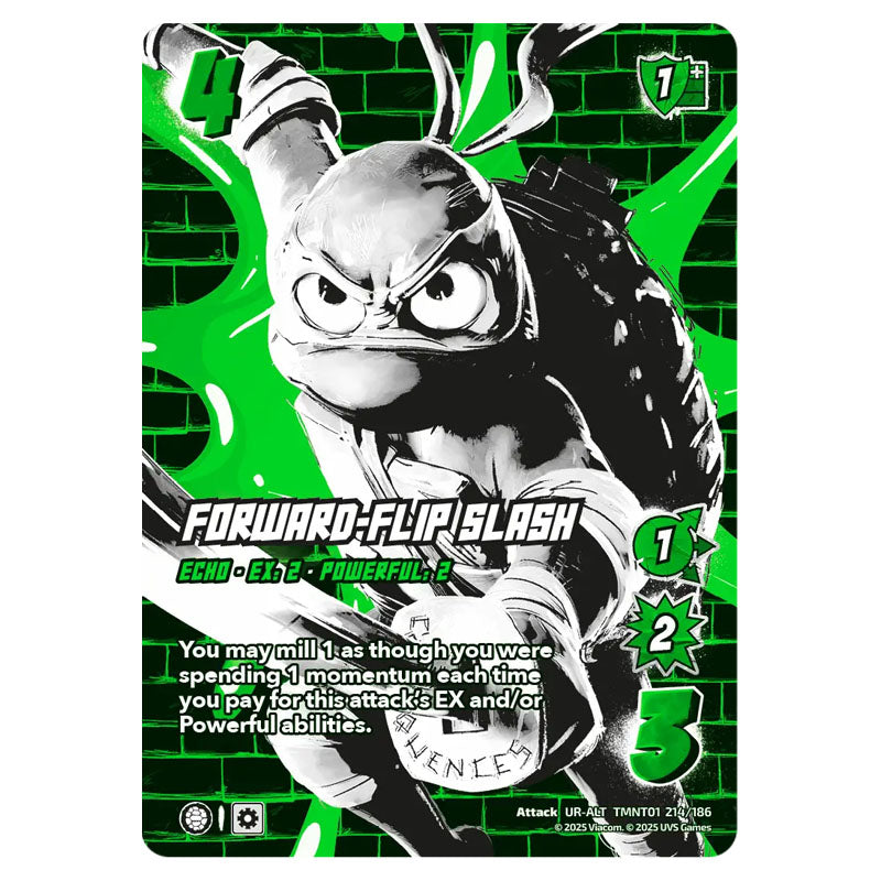 Forward-Flip Slash is a AltArt card from the Universus set Teenage Mutant Ninja Turtles
