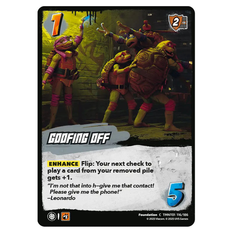 Goofing Off is a Common Foundation card from the Universus set Teenage Mutant Ninja Turtles