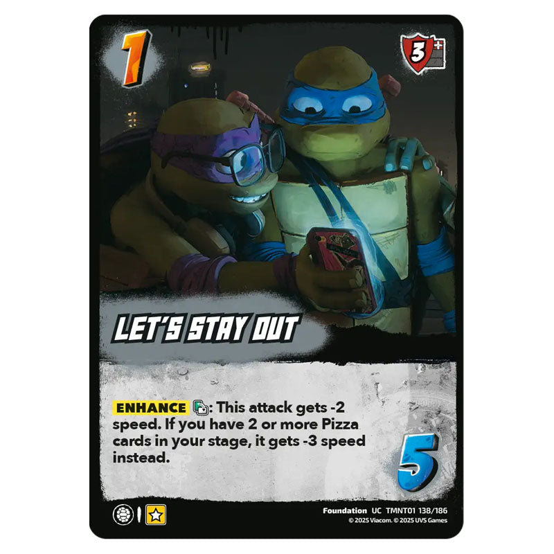 Let's Stay Out is a Uncommon Foundation card from the Universus set Teenage Mutant Ninja Turtles