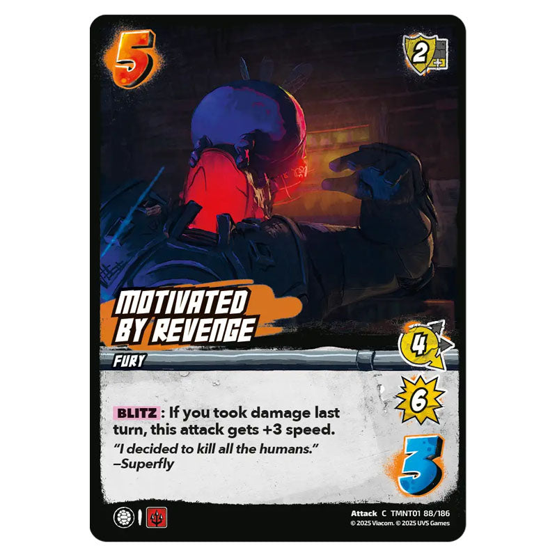 Motivated by Revenge is a Common Attack card from the Universus set Teenage Mutant Ninja Turtles