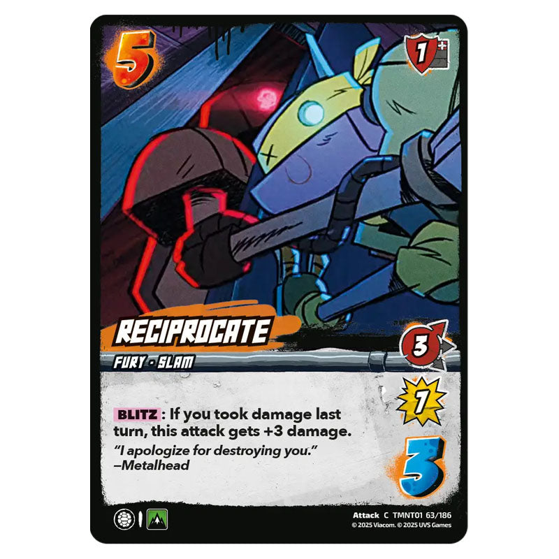Reciprocate is a Common Attack card from the Universus set Teenage Mutant Ninja Turtles