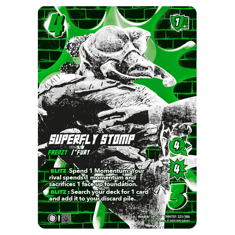 Superfly Stomp is a AltArt card from the Universus set Teenage Mutant Ninja Turtles