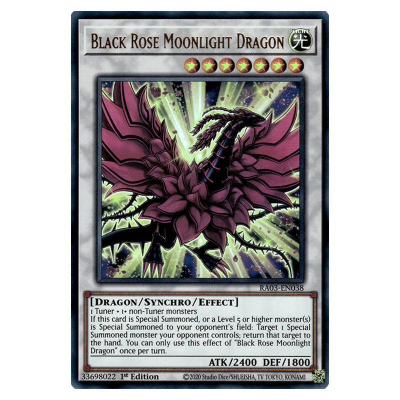 Black Rose Moonlight Dragon is a Ultra Rare, Effect Monster from the Yugioh set Quarter Century Bonanza (RA03-EN038)