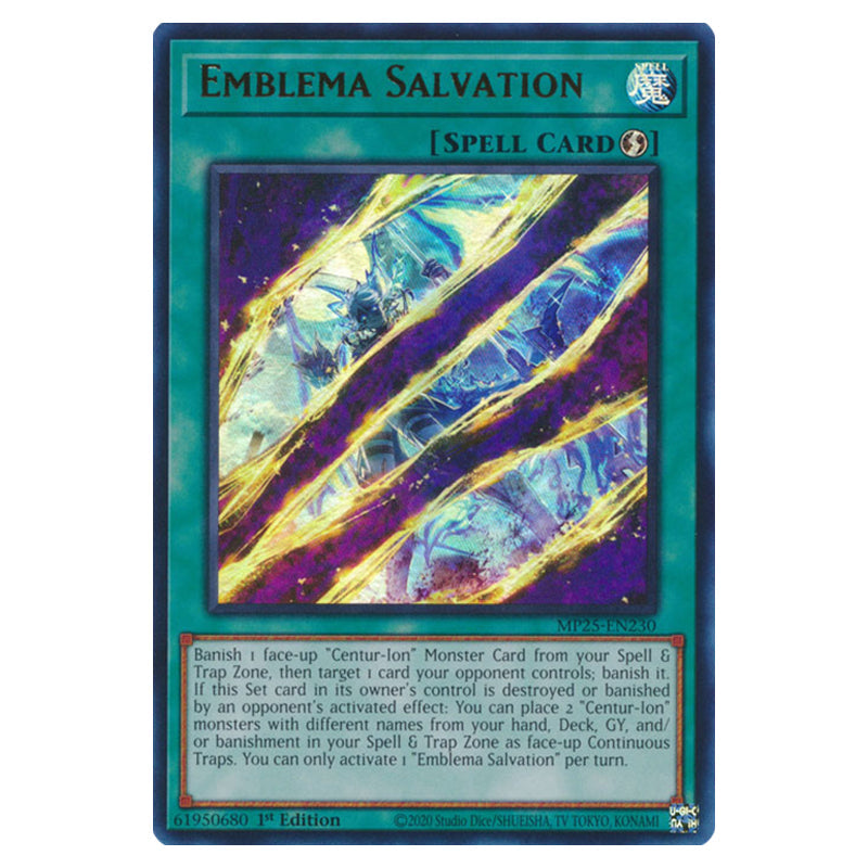 Emblema Salvation is a Ultra Rare, Quick-Play Spell from the Yugioh set 2025 Mega Pack (MP25-EN230)