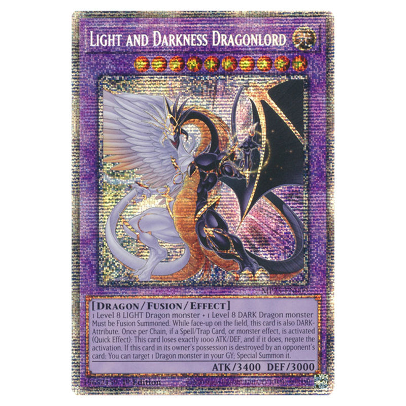 Light and Darkness Dragonlord is a Starlight Rare, Effect Fusion Monster from the Yugioh set 2025 Mega Pack (MP25-EN009)