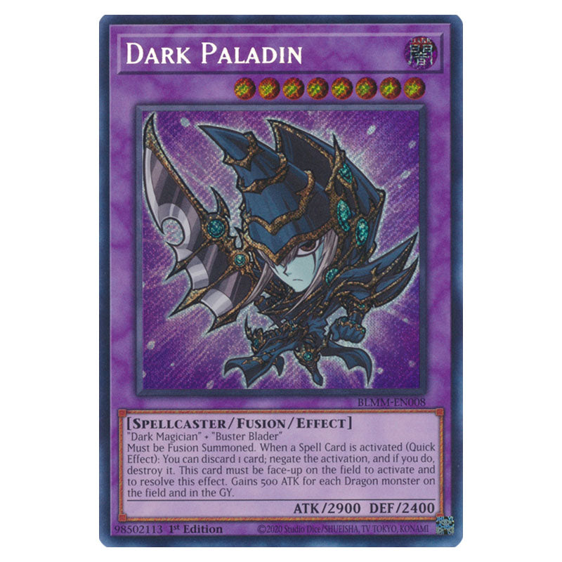 Dark Paladin is a Secret Rare, Effect Fusion Monster from the Yugioh set Battles of Legend: Monster Mayhem (BLMM-EN008)
