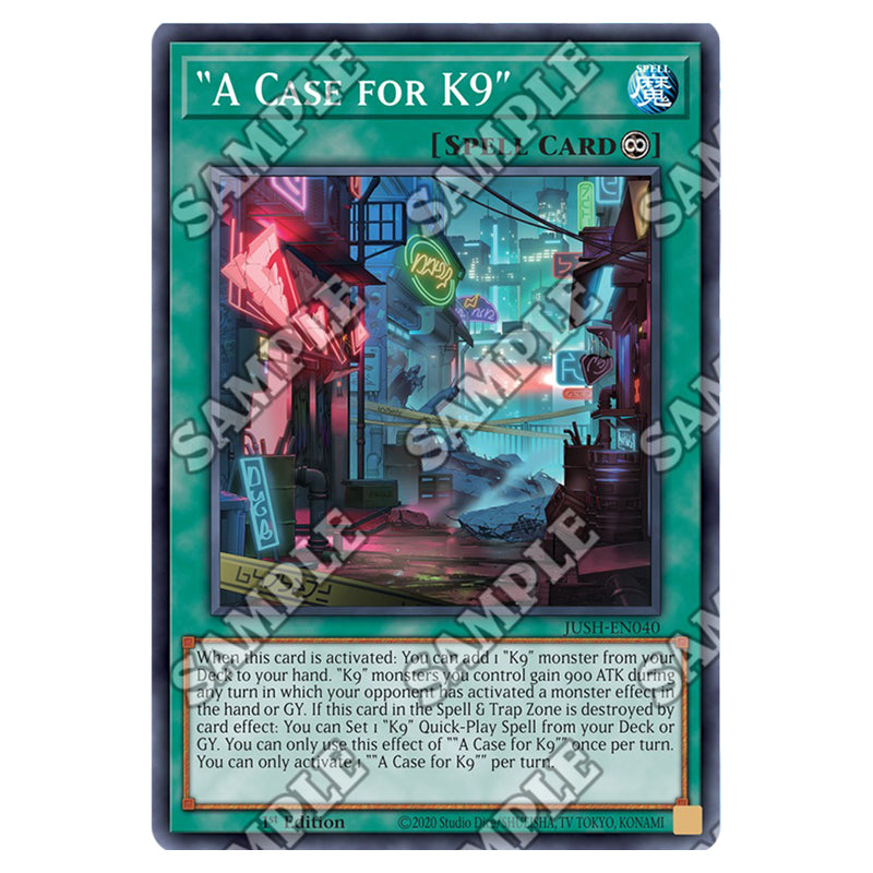 A Case for K9 is a Super Rare, Continuous Spell from the Yugioh set Justice Hunters (JUSH-EN040)