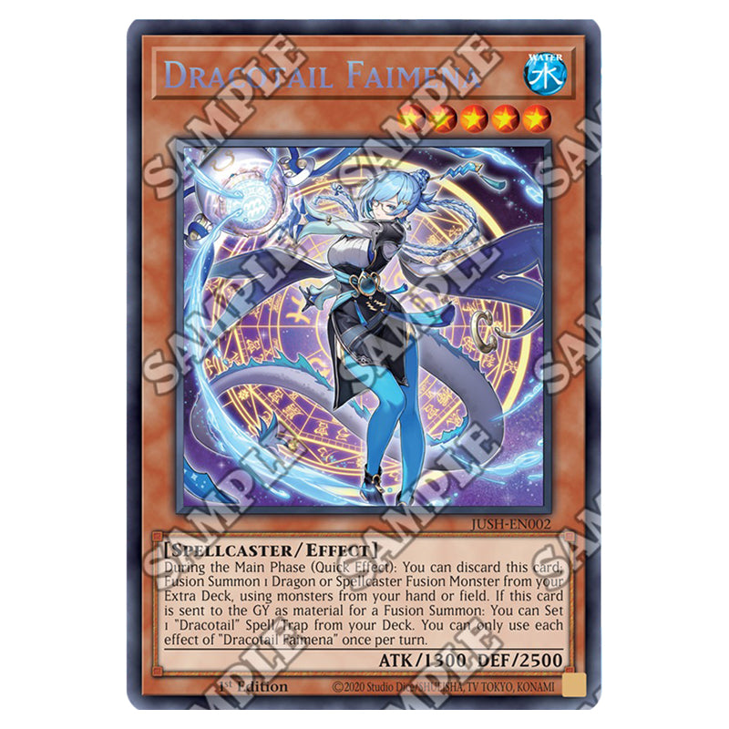 Dracotail Faimena is a Collector's Rare, Effect Monster from the Yugioh set Justice Hunters (JUSH-EN002a)