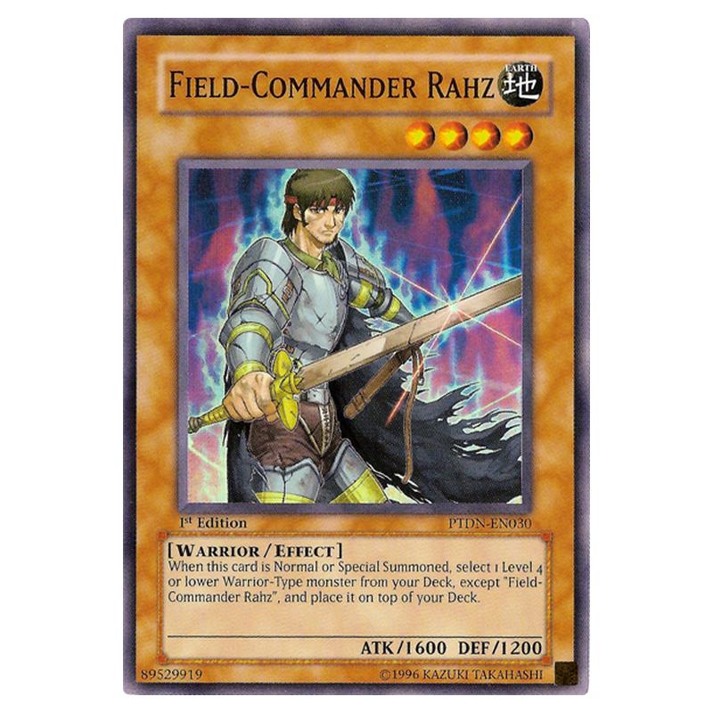 When this card is Normal or Special Summoned: Choose 1 Level 4 or lower Warrior-Type monster from your Deck, except "Field-Commander Rahz", and place it on top of your Deck.