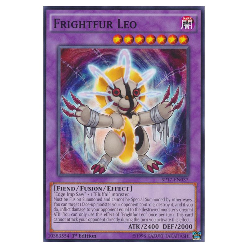 \\"Edge Imp Saw\\" + 1 \\"Fluffal\\" monsterMust be Fusion Summoned and cannot be Special Summoned by other ways. You can target 1 face-up monster your opponent controls; destroy it, and if you do, inflict damage to your opponent equal to the destroyed monster's original ATK. You can only use this effect of \\"Frightfur Leo\\" once per turn. This card cannot attack your opponent directly during the turn you activate this effect.