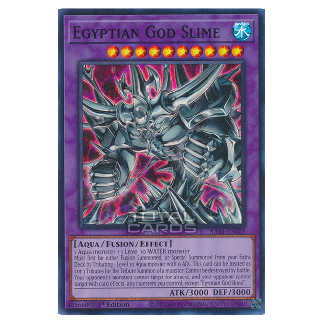 Egyptian God Slime is a Super Rare, Effect Fusion Monster from the Yugioh set 25th Anniversary Rarity Collection (RA01-EN029-SR)