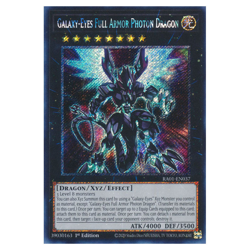 Galaxy-Eyes Full Armor Photon Dragon is a Platinum Rare, Effect Xyz Monster from the Yugioh set 25th Anniversary Rarity Collection (RA01-EN037-PR)