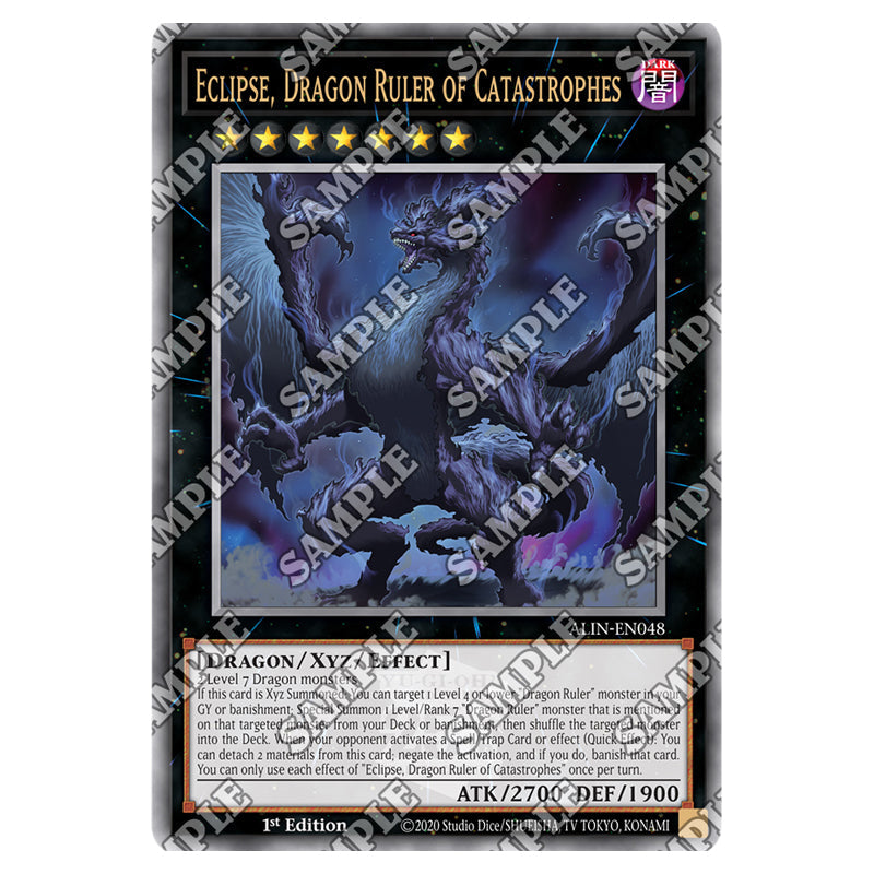Eclipse, Dragon Ruler of Catastrophes is a Quarter Century Secret Rare, Effect Xyz Monster from the Yugioh set Alliance Insight (ALIN-EN048-QCR)