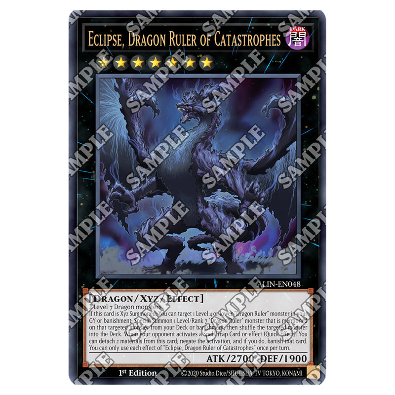 Eclipse, Dragon Ruler of Catastrophes is a Ultra Rare, Effect Xyz Monster from the Yugioh set Alliance Insight (ALIN-EN048)
