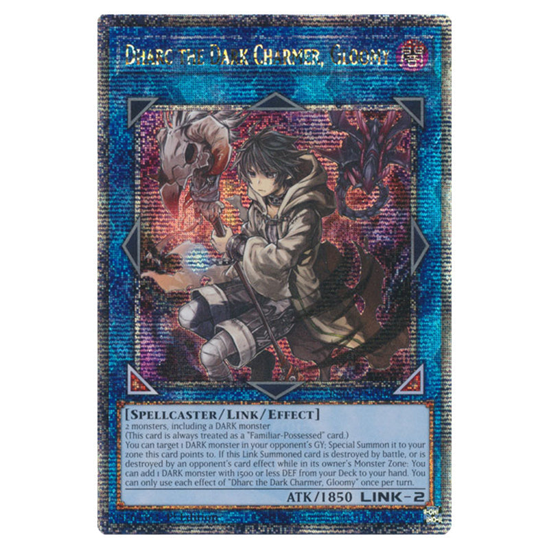 Dharc the Dark Charmer, Gloomy is a Quarter Century Secret Rare, Effect Tuner monster from the Yugioh set Quarter Century Bonanza (RA03-EN048)
