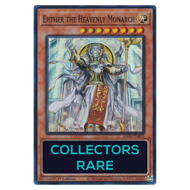 Ehther the Heavenly Monarch is a Collector's Rare, Effect Monster from the Yugioh set Quarter Century Stampede (RA04-EN018-CR)