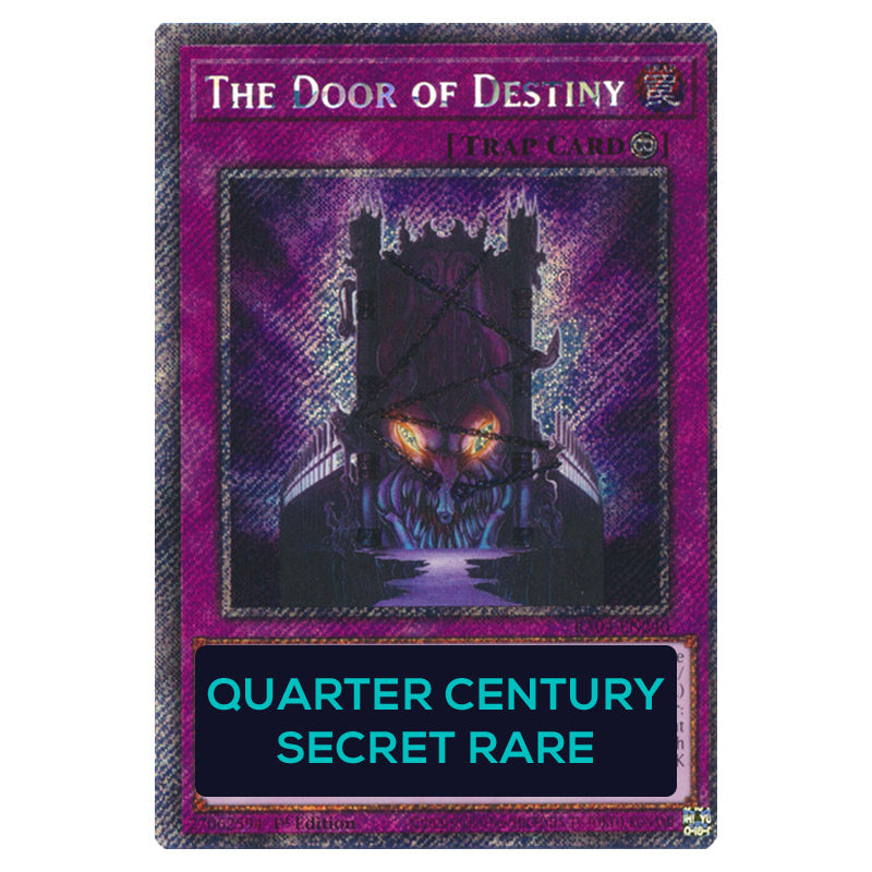 The Door of Destiny is a Quarter Century Secret Rare, Continuous Trap from the Yugioh set Quarter Century Stampede (RA04-EN240-QCSR)