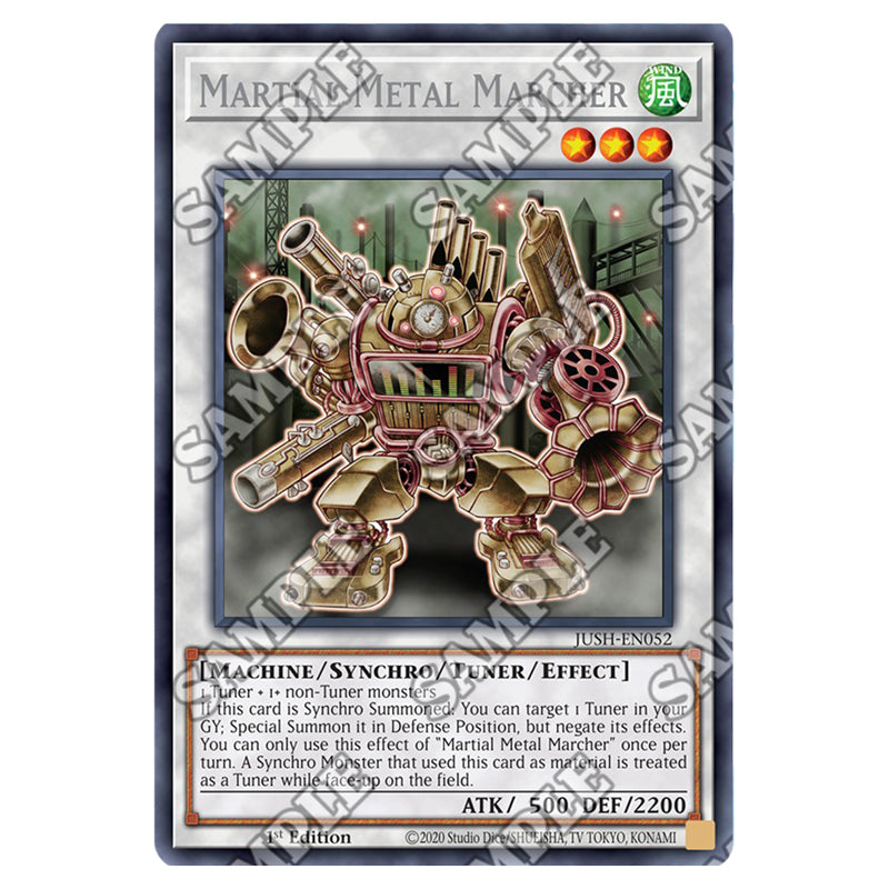 Martial Metal Marcher is a Rare, Effect Tuner Synchro Monster from the Yugioh set Justice Hunters (JUSH-EN052)