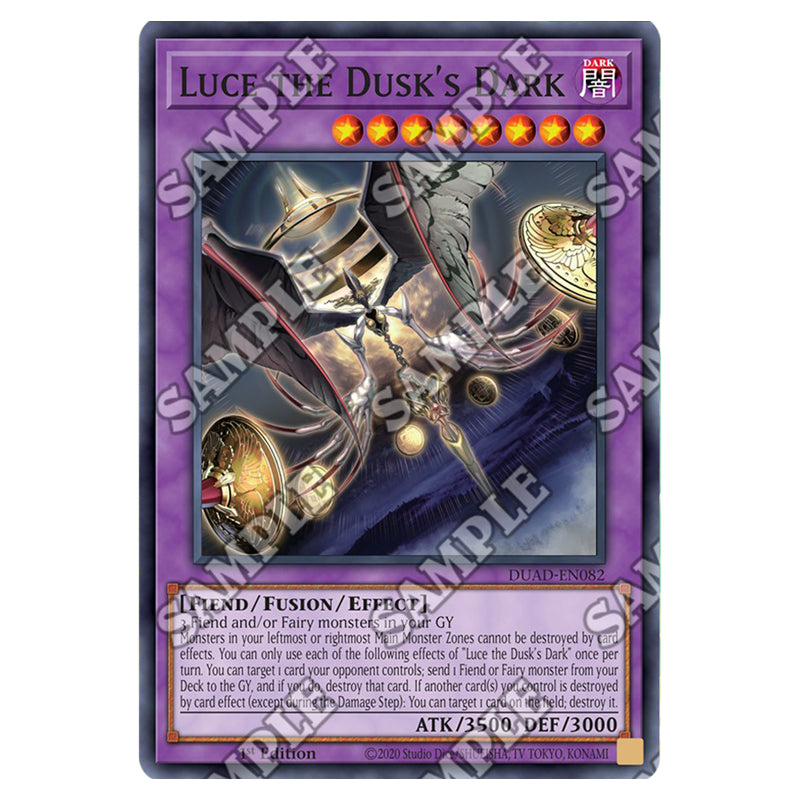 Luce the Dusk's Dark is a Super Rare, Effect Fusion Monster from the Yugioh set Duelist’s Advance (DUAD-EN082)