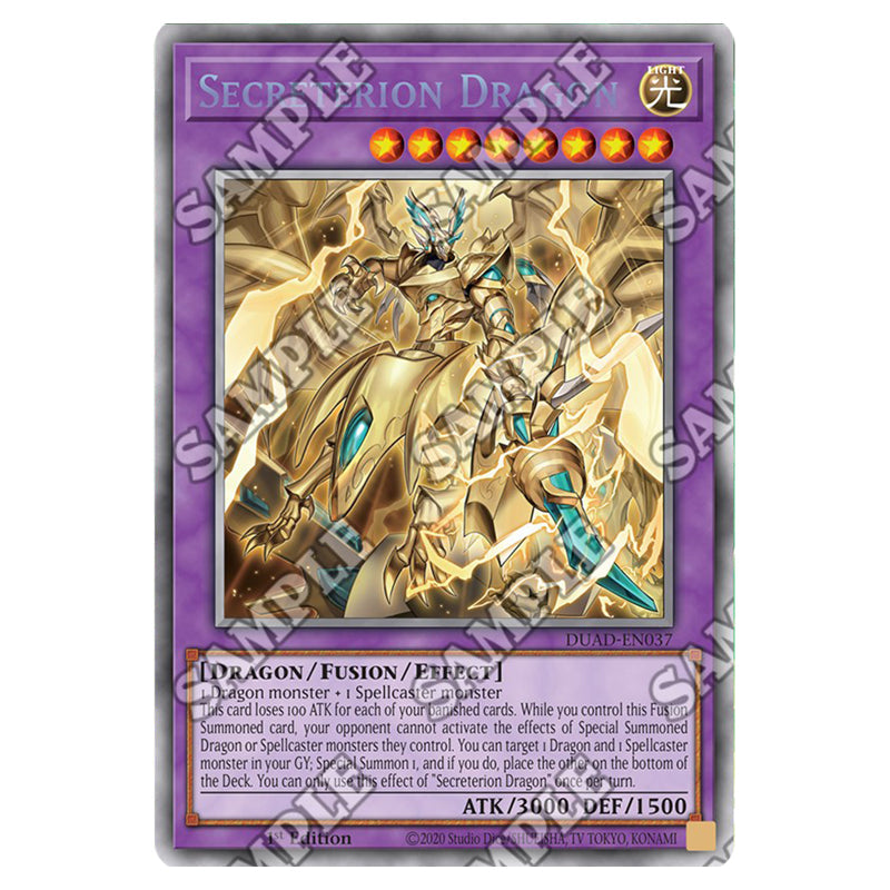 Secreterion Dragon is a Starlight Rare, Effect Fusion Monster from the Yugioh set Duelist’s Advance (DUAD-EN037A)
