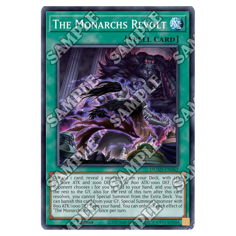 The Monarchs Revolt is a Super Rare, Normal Spell from the Yugioh set Duelist’s Advance (DUAD-EN062)