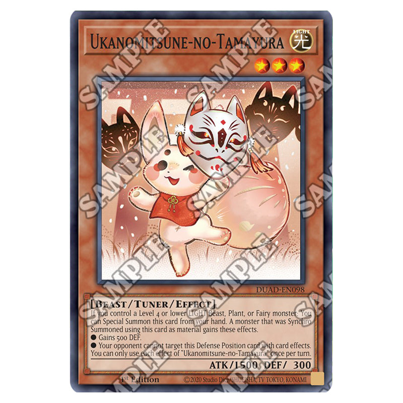 Ukanomitsune-no-Tamayura is a Common, Effect Tuner monster from the Yugioh set Duelist’s Advance (DUAD-EN098)