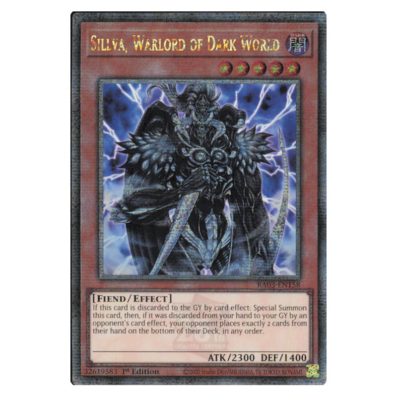 Sillva, Warlord of Dark World is a Quarter Century Secret Rare, Effect Tuner monster from the Yugioh set Quarter Century Bonanza (RA03-EN158)
