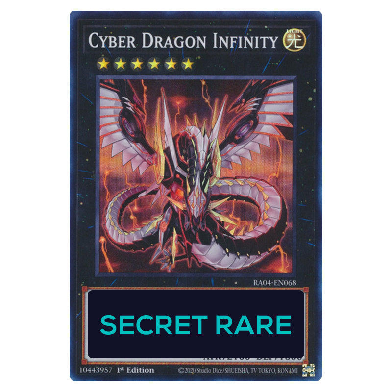 Cyber Dragon Infinity is a Secret Rare, Effect Xyz Monster from the Yugioh set Quarter Century Stampede (RA04-EN068-SCR)