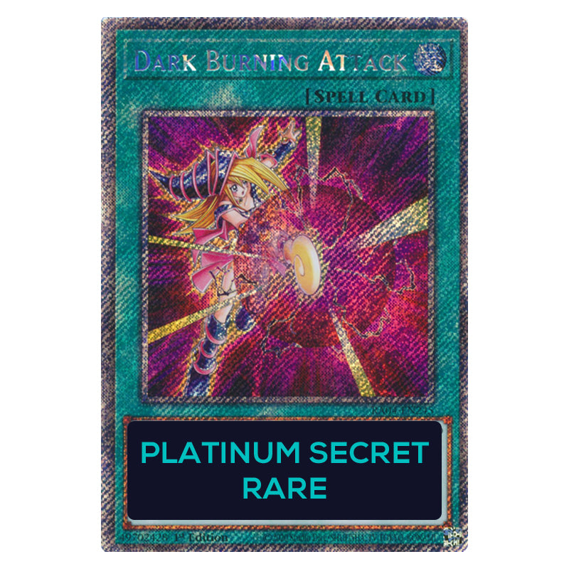 Dark Burning Attack is a Platinum Secret Rare, Normal Spell from the Yugioh set Quarter Century Stampede (RA04-EN245-PSR)