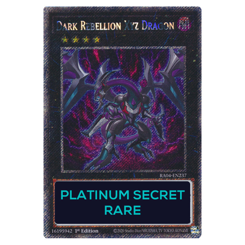 Dark Rebellion Xyz Dragon is a Platinum Secret Rare, Effect Xyz Monster from the Yugioh set Quarter Century Stampede (RA04-EN237-PSR)