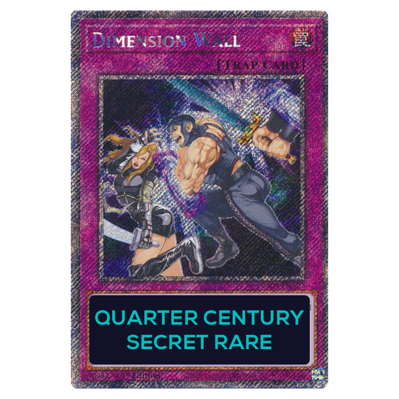 Dimension Wall is a Quarter Century Secret Rare, Normal Trap from the Yugioh set Quarter Century Stampede (RA04-EN127-QCSR)