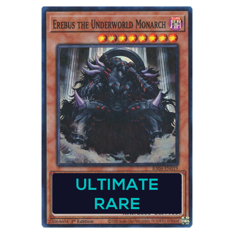 Erebus the Underworld Monarch is a Ultimate Rare, Effect Monster from the Yugioh set Quarter Century Stampede (RA04-EN019-UTR)