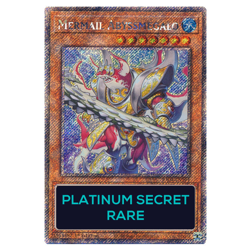 Mermail Abyssmegalo is a Platinum Secret Rare, Effect Monster from the Yugioh set Quarter Century Stampede (RA04-EN191-PSR)