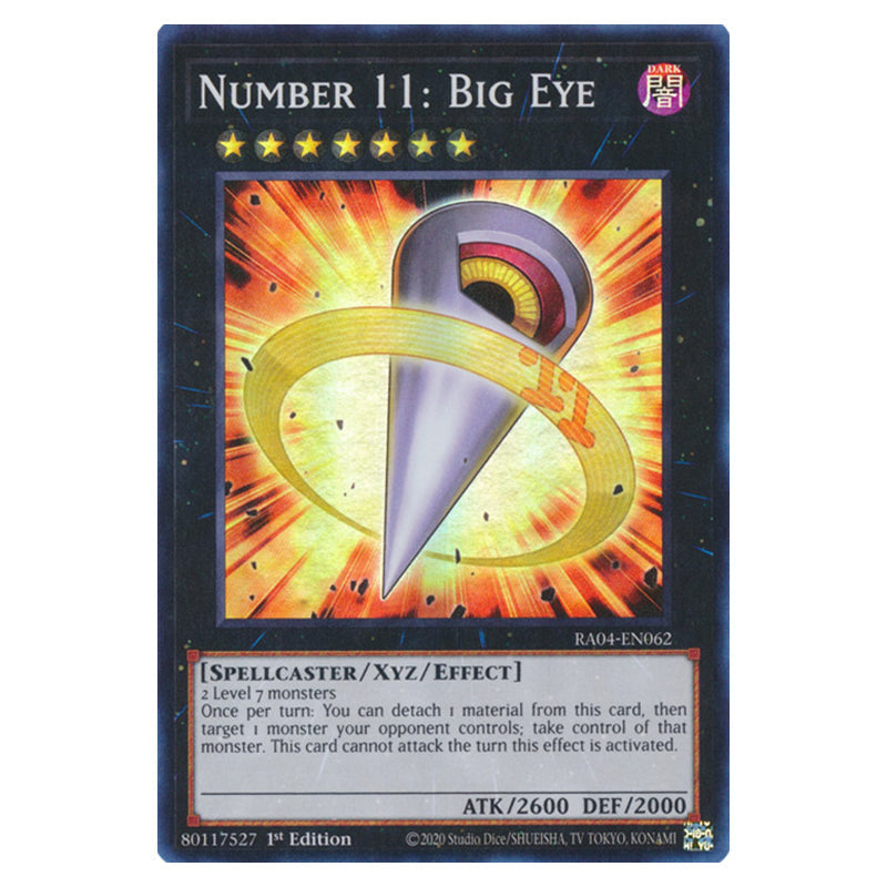 Number 11: Big Eye is a Super Rare, Effect Xyz Monster from the Yugioh set Quarter Century Stampede (RA04-EN062-SR)