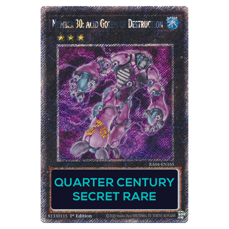 Number 30: Acid Golem of Destruction is a Quarter Century Secret Rare, Effect Xyz Monster from the Yugioh set Quarter Century Stampede (RA04-EN165-QCSR)