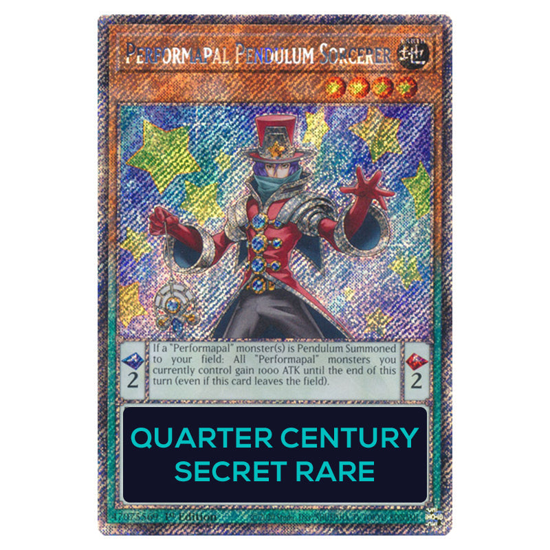 Performapal Pendulum Sorcerer is a Quarter Century Secret Rare, Effect Pendulum Monster from the Yugioh set Quarter Century Stampede (RA04-EN242-QCSR)