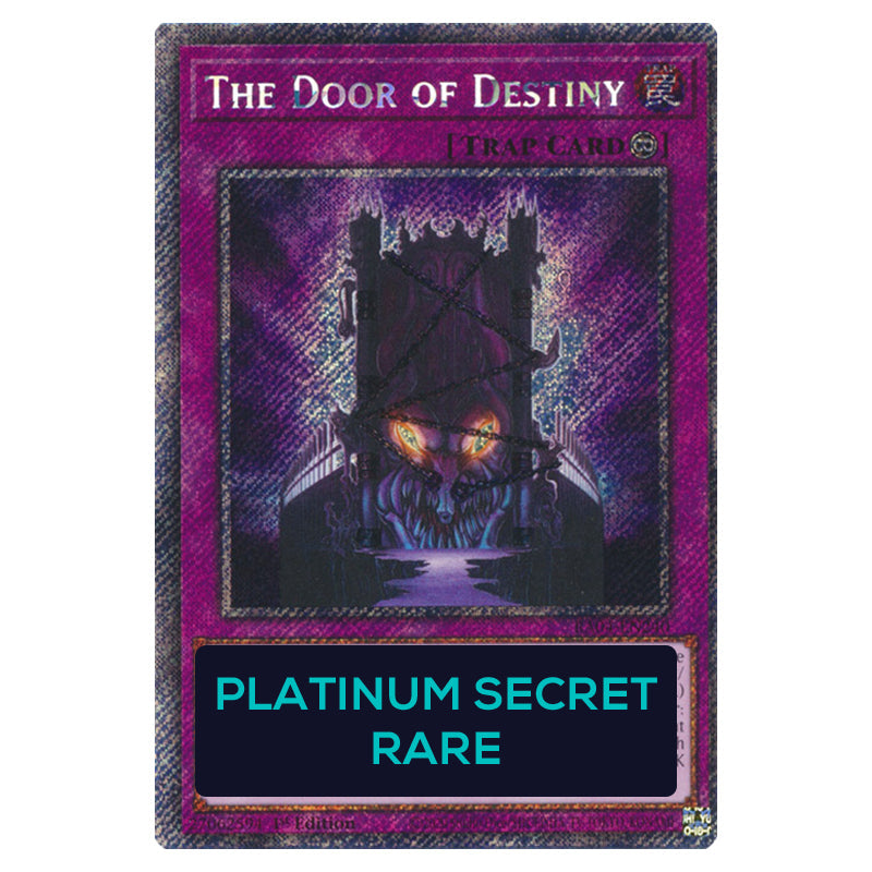 The Door of Destiny is a Platinum Secret Rare, Continuous Trap from the Yugioh set Quarter Century Stampede (RA04-EN240-PSR)