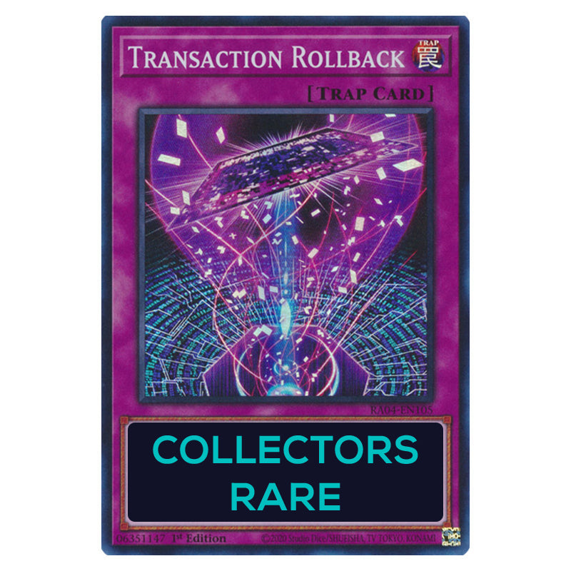 Transaction Rollback is a Collector's Rare, Normal Trap from the Yugioh set Quarter Century Stampede (RA04-EN105-CR)