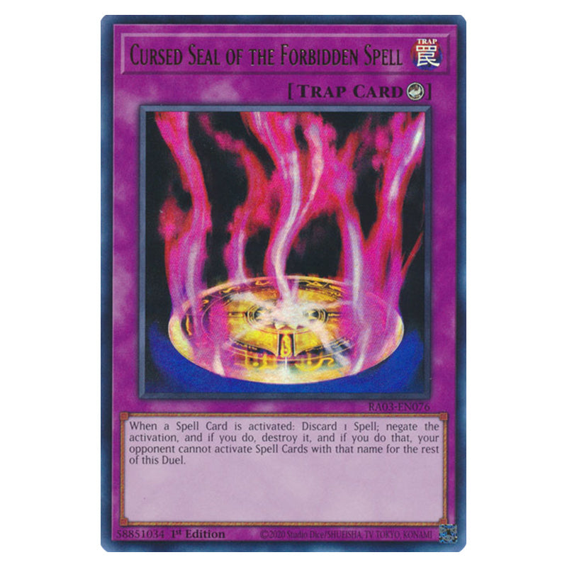 Cursed Seal of the Forbidden Spell is a Ultra Rare, Quick-Play Spell from the Yugioh set Quarter Century Bonanza (RA03-EN076)